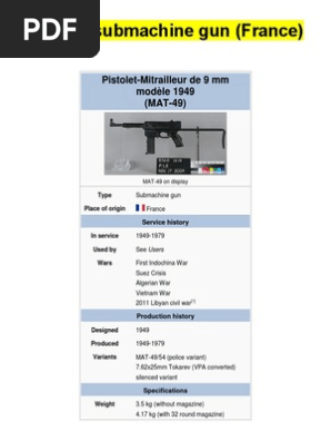 Mat 49 Manufacture Nationale D Armes De Tulle 49 Submachine Gun Smg